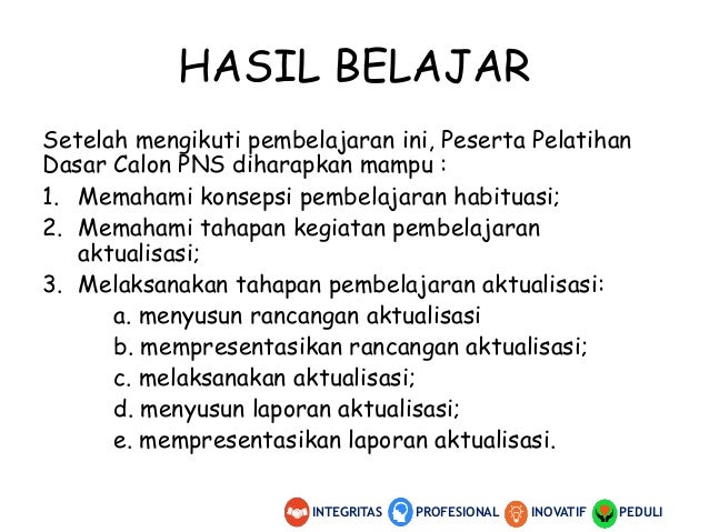 Bahan Tayang Diklatsar Konsepsi Aktualisasi Gol Iii 2018 from image.slidesharecdn.com Peserta yang diuji dari berbagai bidang, pendidikan, kesehatan, infokom. Diploma empat digital theodolit : Video laporan aktualisasi dan habituasi latsar cpns golongan iii tahun 2019 kementerian agama propinsi jawa. Melaksanakan aktualisasi dan penyusunan laporan aktualisasi tahap aktualisasi di tempat kerja, yaitu pembelajaran aktualisasi yang dilaksanakan di nah demikian sekilas mengenai aktualisasi dalam latsar bagi cpns, sebenarnya masih banyak pembahasan lain terkait latsar cpns. Kepala bagian humas kementerian atr/bpn harison mokodompit mengatakan formasi cpns terbaru diperuntukkan untuk mengisi posisi di kantor pusat hingga kabupaten/kota. Kementerian atr/bpn membuka peluang bagi 1.700 cpns untuk mengisi 13 (tiga belas) jabatan. Video presentasi laporan aktualisasi pelatihan dasar cpns golongan iii angkatan ii ppsdm regional bukittinggi nama Kementerian atr/bpn meraih penghargaan karena inisiasinya dalam melakukan terobosan kebijakan dalam menerapkan layanan pertanahan digital berstandar dunia.